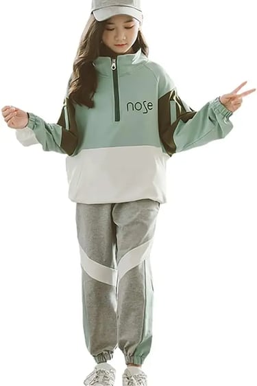 カジュアルで動きやすい女の子用ジャージ上下セット。韓国風デザインでおしゃれに着こなせる2点セットです。柔らかいスウェット素材で春秋の普段着や運動、ダンスにも最適。通学やお出かけにも使いやすいシンプルスタイル。