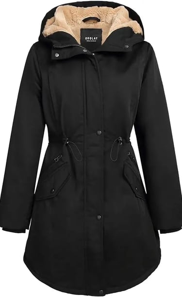 膝下丈のレディースロングコート。ウエストを自然に絞り、スタイルアップ効果◎。暖かい中綿入りで防寒性抜群、フード付きで寒い季節に最適。通勤・通学やお出かけに活躍する一枚。