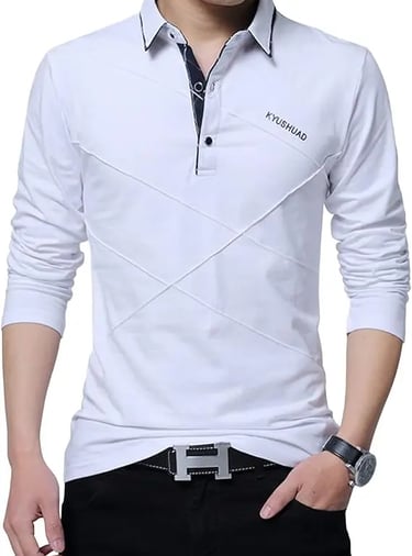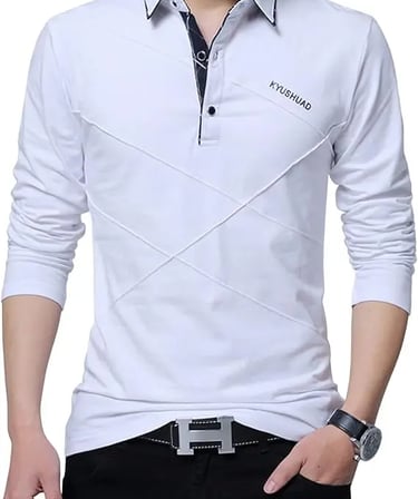 しっかりした襟と3ボタン仕様のOKJCON長袖ポロシャツ。綿95%で柔らかく快適な着心地。カジュアルからビジネス、ゴルフシーンまで幅広く活躍する無地デザイン。