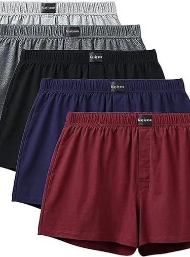 柔らかく伸縮性に優れたKayiyasuニットトランクス。95%綿で通気性・吸汗性・速乾性に優れ、前開きボタン付きで快適。3枚/5枚セットで幅広いサイズ展開、日常使いに最適。